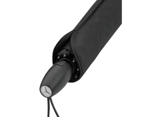 Prezzo di listino €45,00Prezzo di listinoPrezzo unitario / perPrezzo scontato €45,00Il mini-ombrello color antracite, compatto e ultraleggero, è adatto per essere riposto in qualsiasi borsa. Offre un riparo sicuro anche nell'emergenza di un acquazzone improvviso. La superficie esterna è realizzata in poliestere pongee ultraleggero con Stella Mercedes stampata, mentre la raffinata struttura windproof assicura la massima flessibilità delle stecche – che resistono anche alle raffiche di vento. Il manico in alluminio nero si chiude con una pratica impugnatura in materiale sintetico impreziosita da una targhetta con Stella 3D color argento.