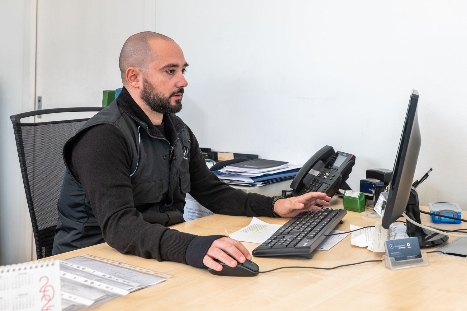 Può recarsi direttamente in ufficio oppure scaricare i moduli online, compilarli e portarli il giorno della visita. In questo caso, è sufficiente inviarci via WhatsApp una foto e una copia della patente in scadenza. - Check-out in sede